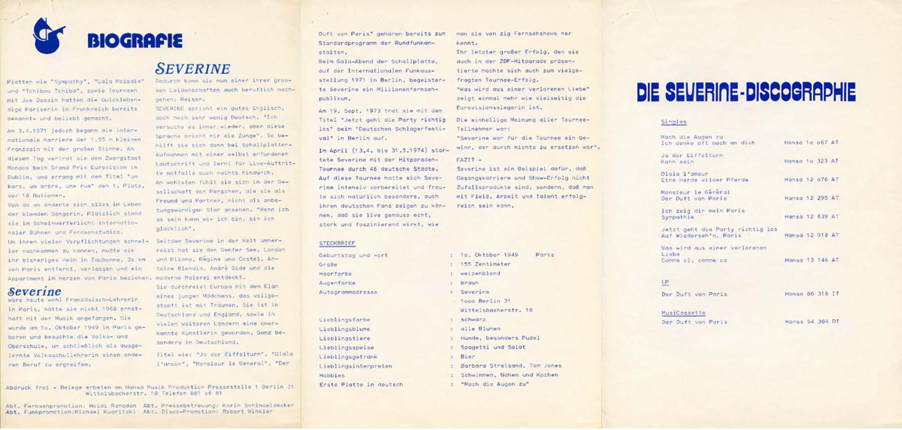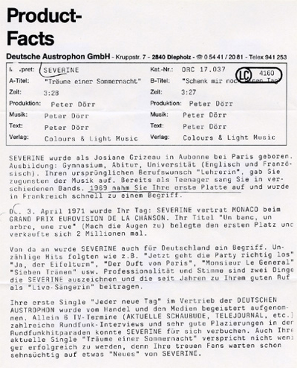 PR-FACTS ÜBER SEVERINE