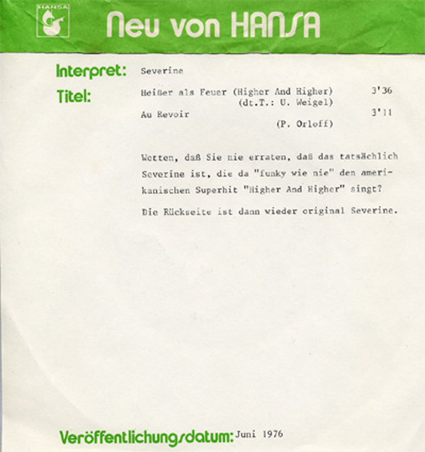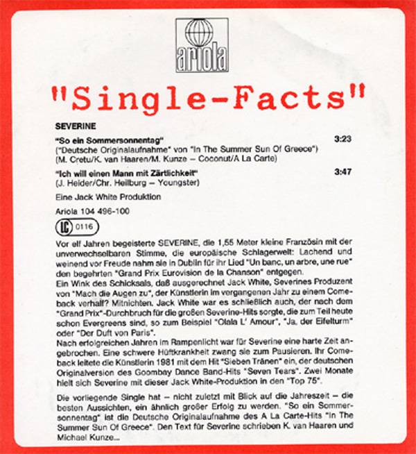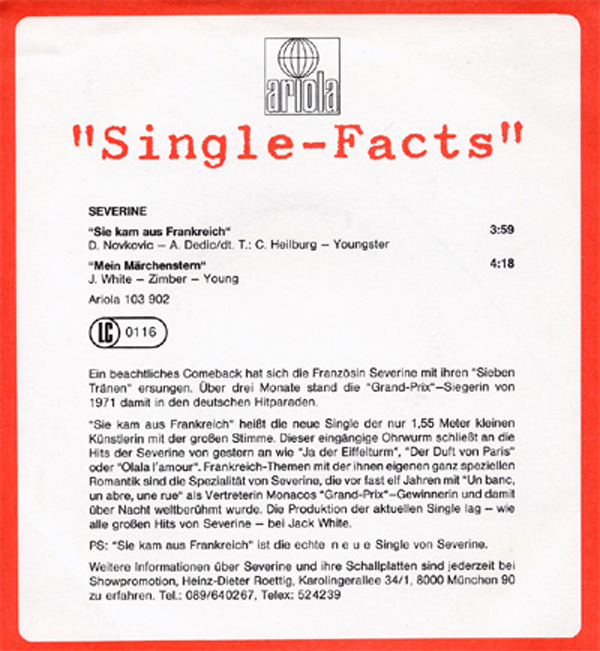 SINGLE "Sie kam aus Frankreich"